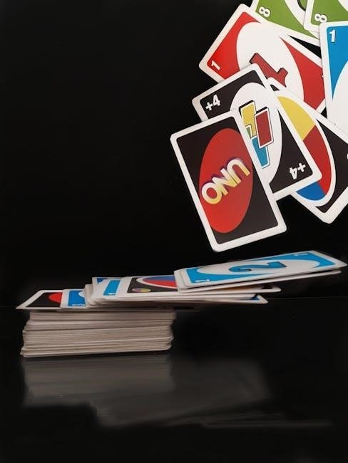 Players should keep their hands concealed from others. Any remaining cards after dealing form the draw pile, placed face down. Accuracy in dealing is crucial for fair play, ensuring everyone begins with an equal opportunity to strategize and win the game.